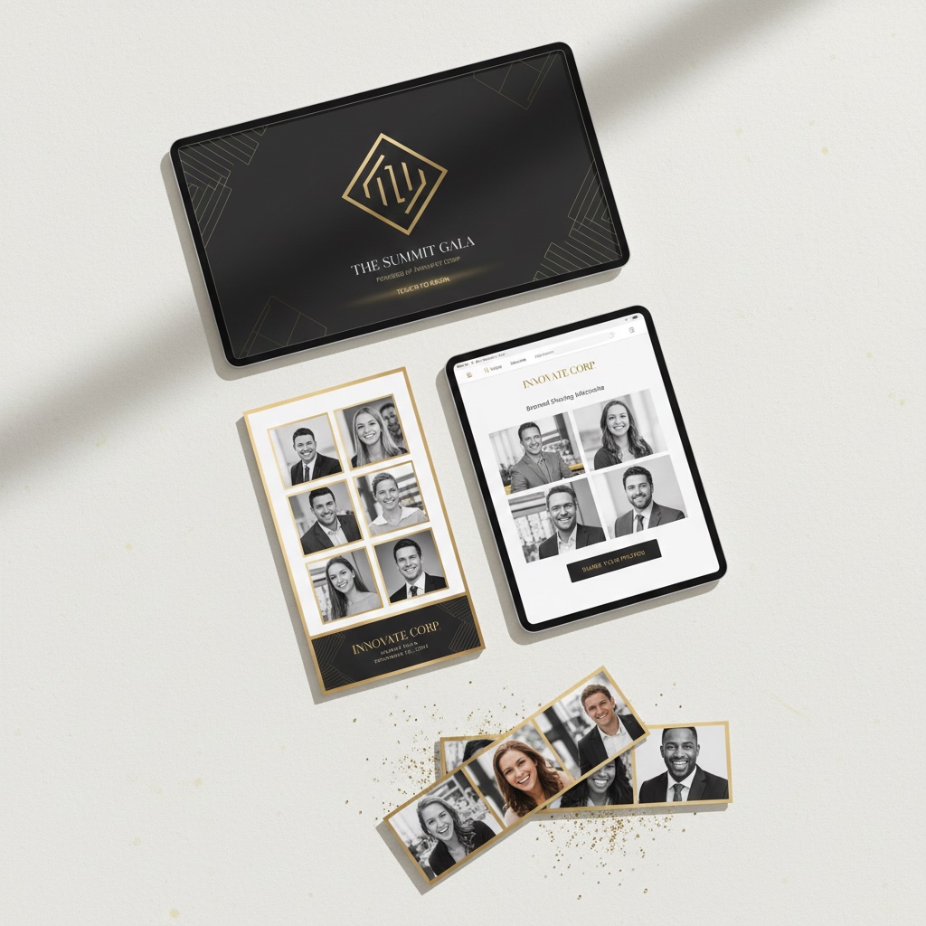 The sharing microsite extends your brand digitally, creating a cohesive online presence where attendees access and download their photos. Even the props, if you choose to include them, can be custom-designed around your brand colors and themes rather than generic mustaches and oversized glasses.